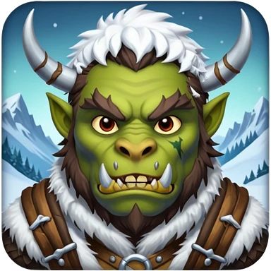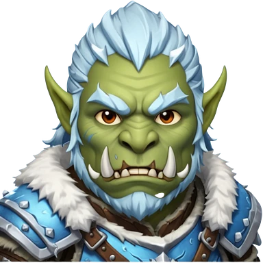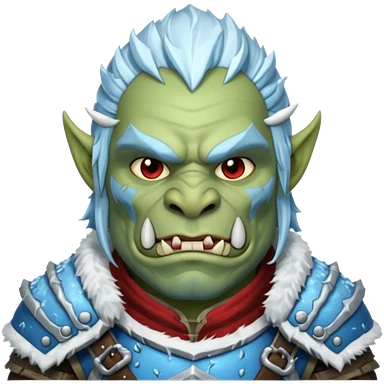 Fantasy Christmas orc portrait icon, frost clan warrior style, winter fur armor, icy details, strong brutal face, snowy battlefield mood, clean emoji style, male/female variant emoji