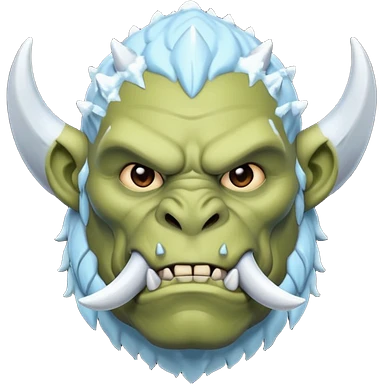 Fantasy orc emoji portrait, tusks lightly covered with ice and snow, winter predator look, strong silhouette, clean minimal emoji design, male/female variant emoji