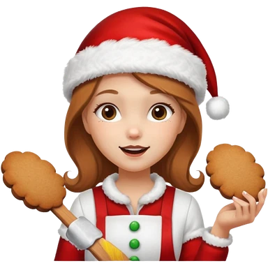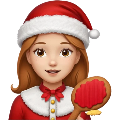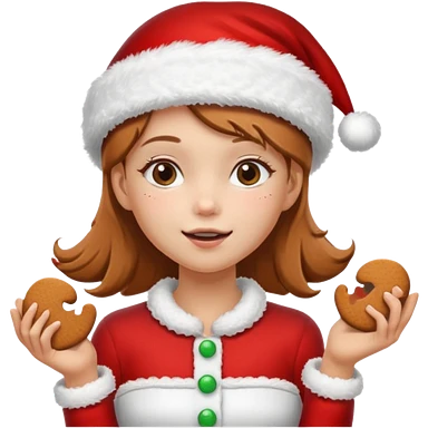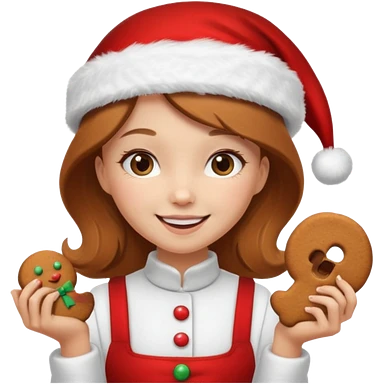 clean and vanilla girl with santa claus hat like holiday mood, baking ginger cookie emoji