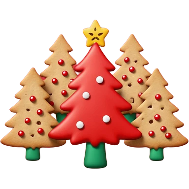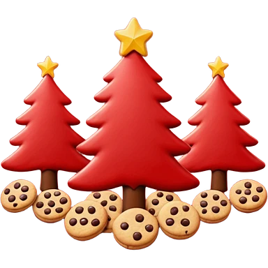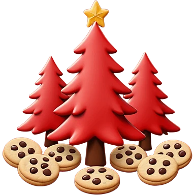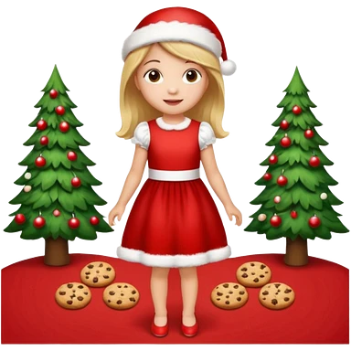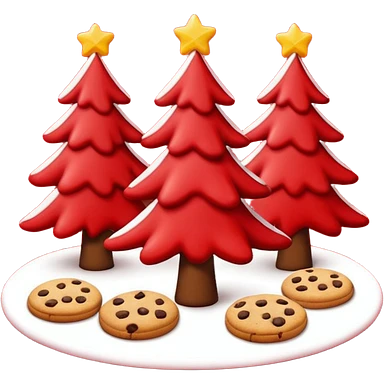 Christmas girly wallpaper with trees cookies chilling all in red colour emoji | AI Emoji Generator