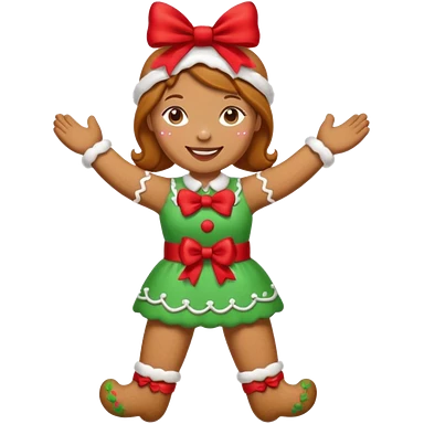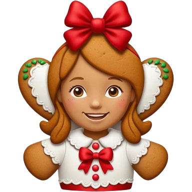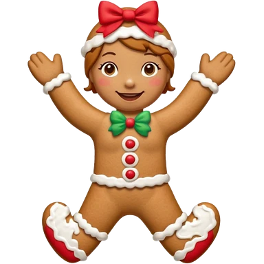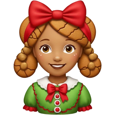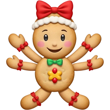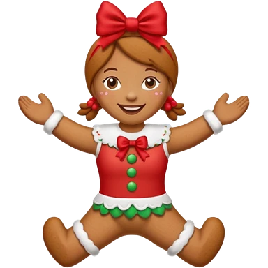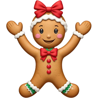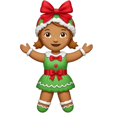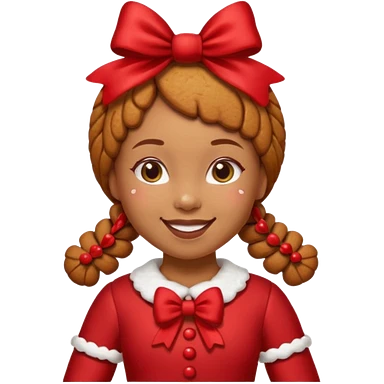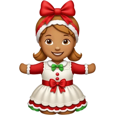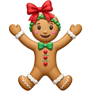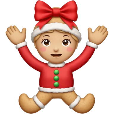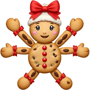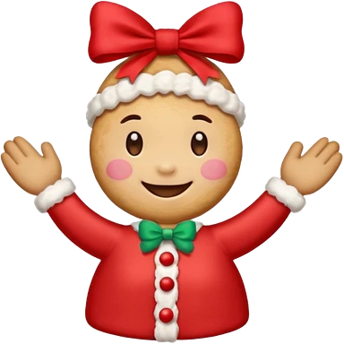 Christmas cookie with arms and legs but and red bow on her head emoji