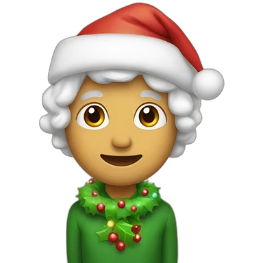 cute emoji face wearing a Santa hat, with a happy soft expression. Replace the festive Christmas elements: a Christmas tree, stocking, snowflake, and other holiday icons. emoji