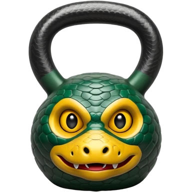 Una kettlebell con la parte delantera con cara de serpiente emoji