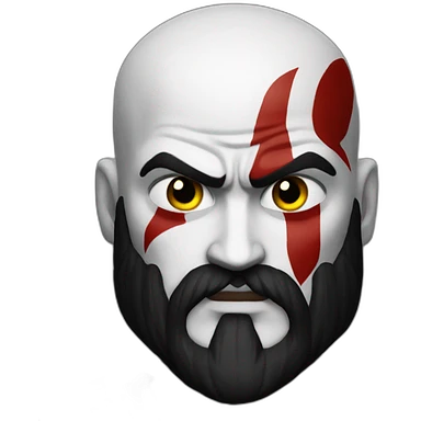 Kratos depicted as an Android emoji, with a stern face, red tattoo, and beard, in a clean, minimal, flat Android emoji style emoji
