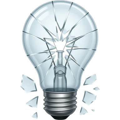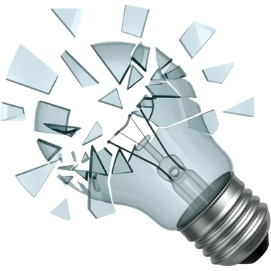broken lightbulb with shards of glass and exposed filament, clear and simple style emoji