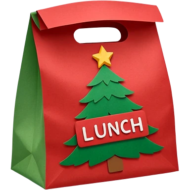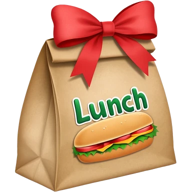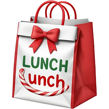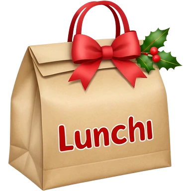 christmas paper lunch bag with the word lunch on it and a bow emoji