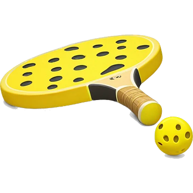 Modern Pickleball paddle, dark grey. Pickleball ball beside or on top the paddle florescent green at 45 degrees emoji