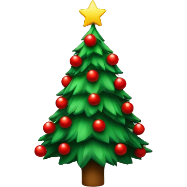 snowy christmas tree with red balls and lights with a star on top and presents underneath and a reindeer with santa claus next to it emoji