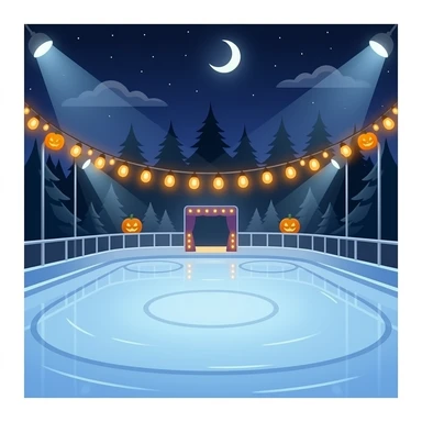 Halloween skating show on the ice rink with Halloween lights on the ice rink emoji
