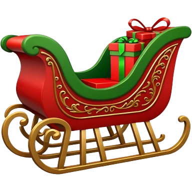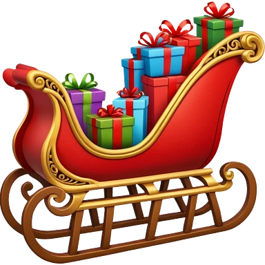 light pink Christmas sleigh piled with colorful gift boxes, emoji style emoji