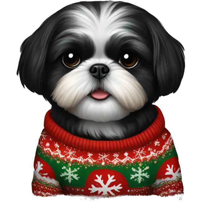 Christmas sweater on ALL BLACK FEMALE SHIH TZU emoji | AI Emoji Generator