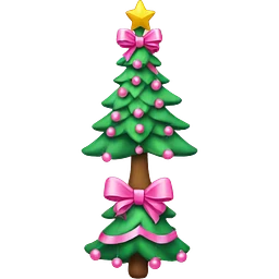 Christmas tree branch, featuring lush green pine needles adorned with elegant bows in pink emoji | AI Emoji Generator