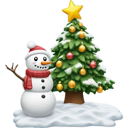 christmas tree with a snowman next to it emoji | AI Emoji Generator