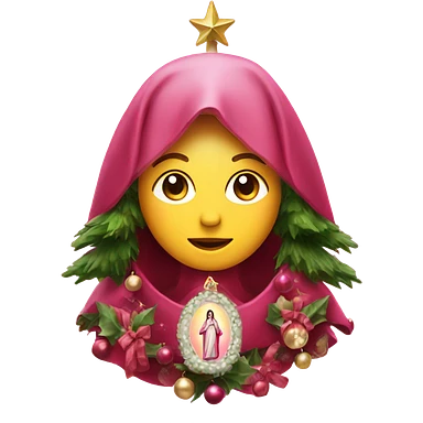 Christmas tree with pink and burgundy decoratio and Virgin Mary on top emoji