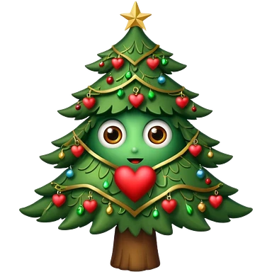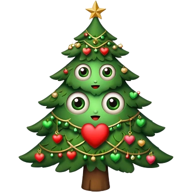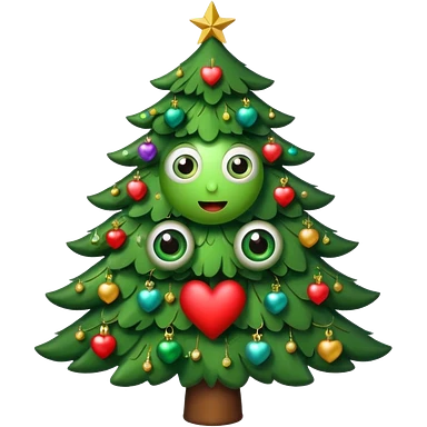 Christmas tree with eyes in shape of heart emoji | AI Emoji Generator