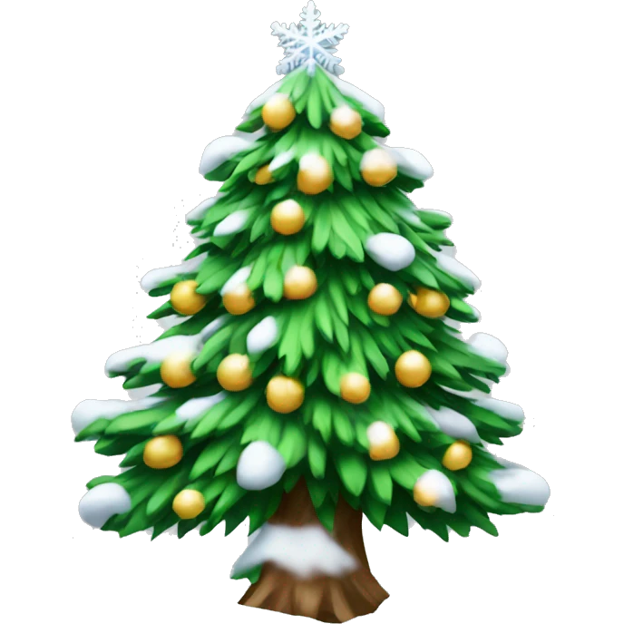 Christmas tree with snow on it and blue and pink ornaments emoji
