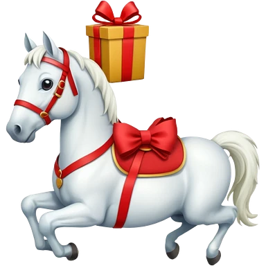christmas new year's white horse with a red saddle with gift box on saddle emoji
