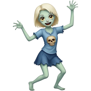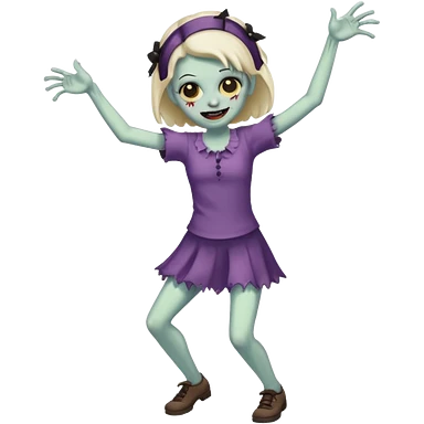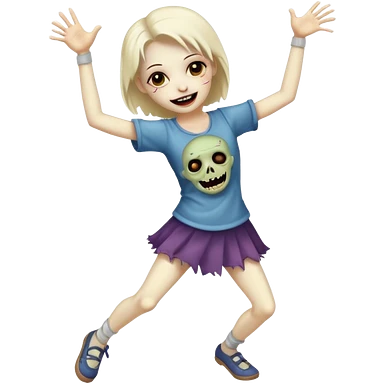 Cute zombie smiles in full view, dancing emoji