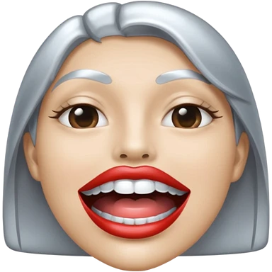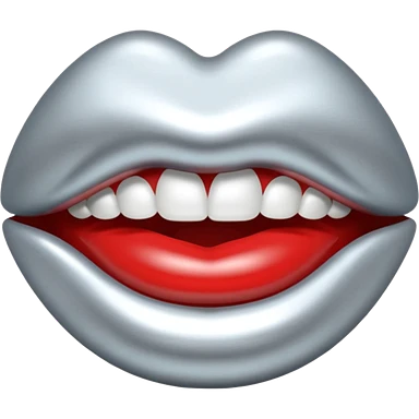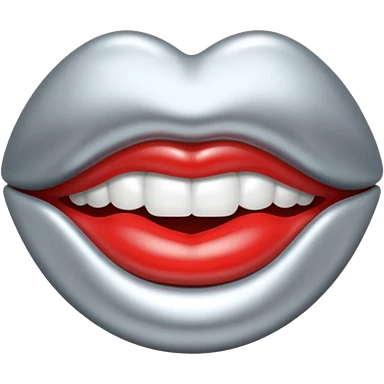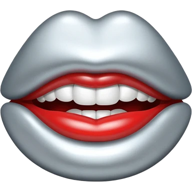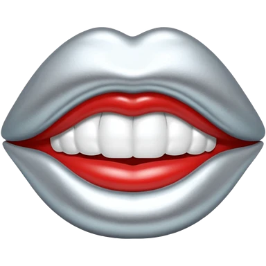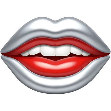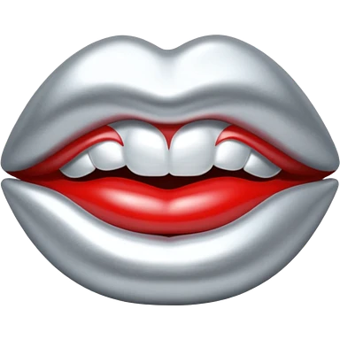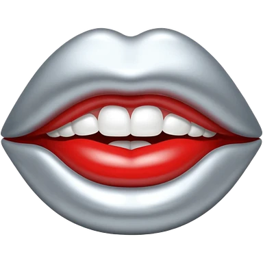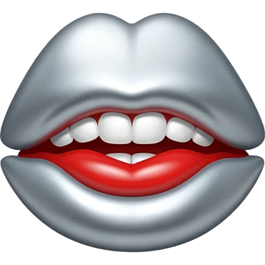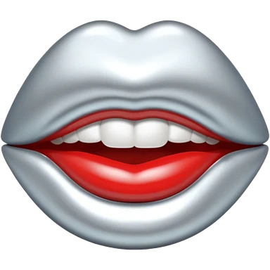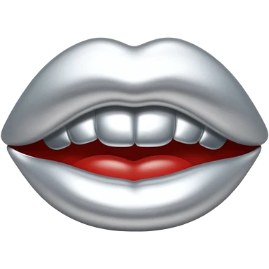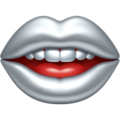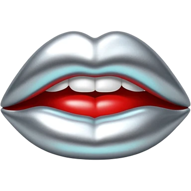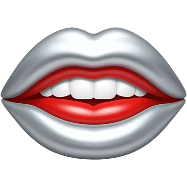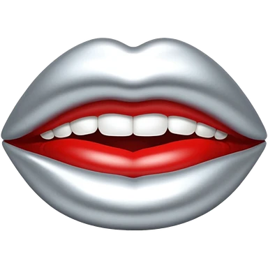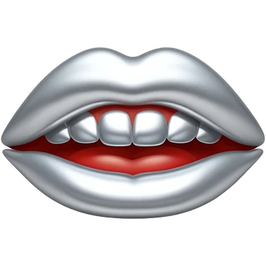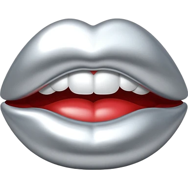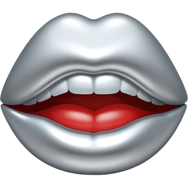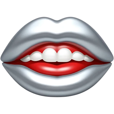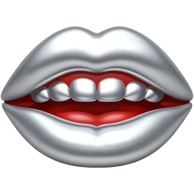 Chrome silver lips emoji, glossy metallic texture, iOS emoji style, smooth reflections, bold but minimal design, centered, silver mouth. all silver emoji