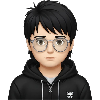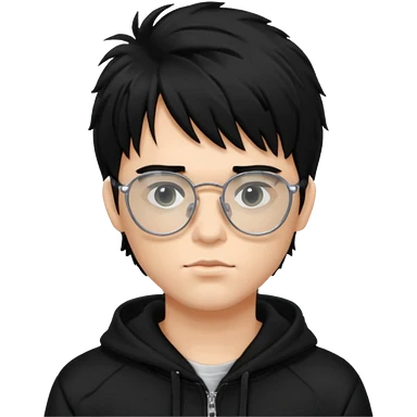 chrome hearts glasses,man, black hair,white,normal,fluffy fringe,black hoodie emoji | AI Emoji Generator