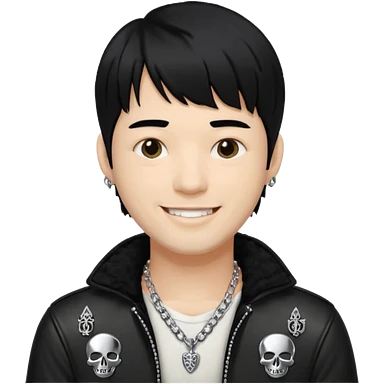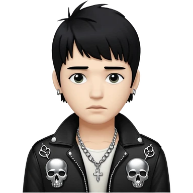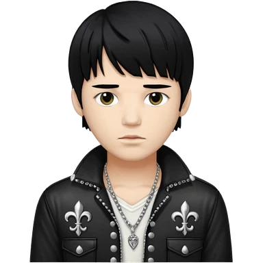 chrome hearts,man, black hair,white,normal,messy fringe emoji