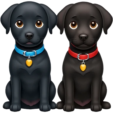 black-coloured labrador on the left with red collar, black-coloured labrador on the right with light blue collar. emoji