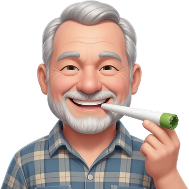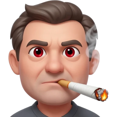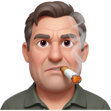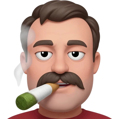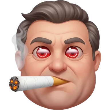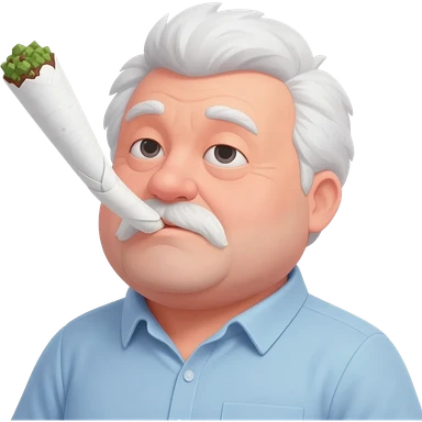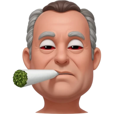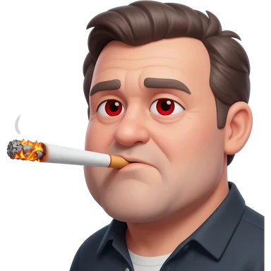 Chubby and funny looking middle aged white guy with dark brown, but graying hair and bloodshot eyes, Smoking A SUPER HUGE all white joint without a brown filter with orange and ash with hot ash and smoke rising off of it emoji | AI Emoji Generator