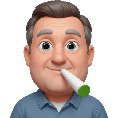 Chubby goofy looking middle aged white guy with dark brown, but graying hair, Smoking A SUPER HUGE white and green smoking doobie emoji