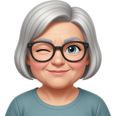 chubby old woman, short pixie cut, and glasses, eye roll emoji