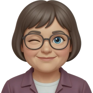 chubby blonde with pixie haircut, gold glasses, blue eyes, big eyelashes, nice smile emoji | AI Emoji Generator