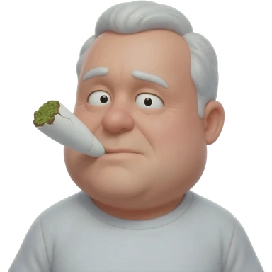 Chubby goofy looking middle aged white guy with dark brown, but graying hair and bloodshot eyes, Smoking A SUPER HUGE all white joint without a brown filter with orange and ash with hot ash and smoke rising off of it emoji | AI Emoji Generator