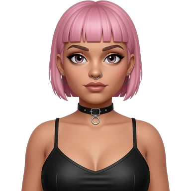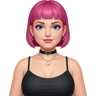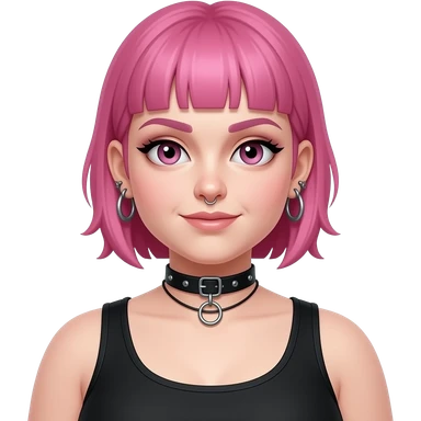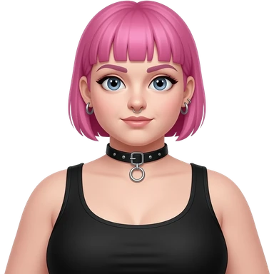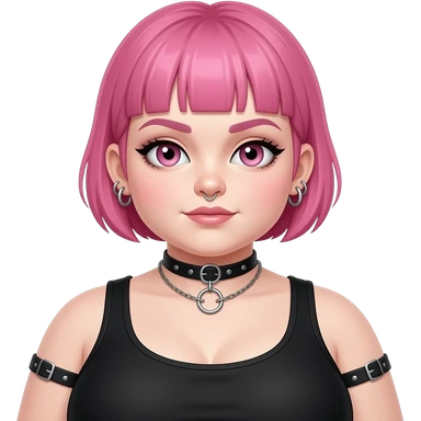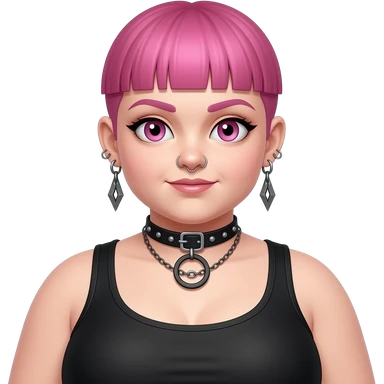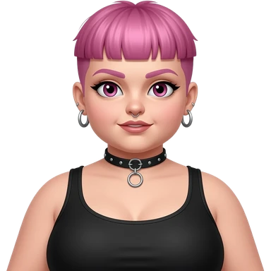 Full body fat goth girl with ear rings nose ring, choker and short buzzcut pink hair emoji