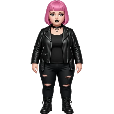 Full body obese goth girl with ear rings nose ring, choker and short buzzcut pink hair show her from head to foot emoji