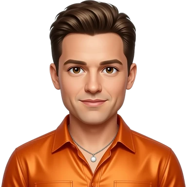 Donnie Wahlberg from NKOTB with brown eyes, dark blonde butch hair, orange metallic shirt, necklace emoji