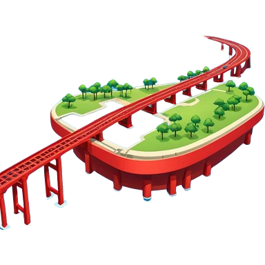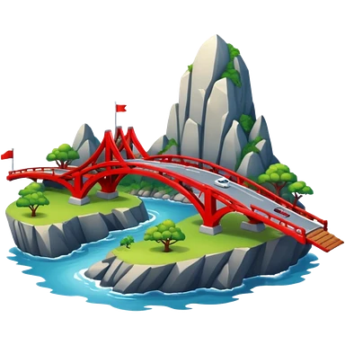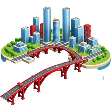 advanced modern island with advanced infrastructure with a red bridge on one side emoji