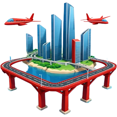 advanced modern island with advanced infrastructure with a red bridge emoji