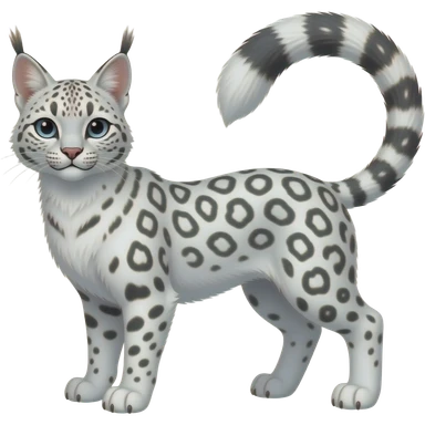 White serval-Manx-caracal-snow-leopard-fantasy-hybrid-animal with long thin tufted tail emoji
