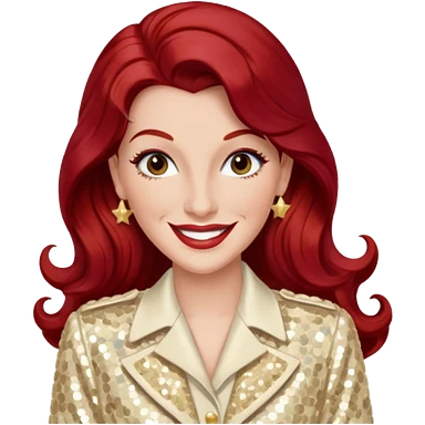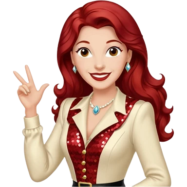 LaVerne Andrews from The Andrews Sisters with long dark red hair, cream sequin outfit emoji