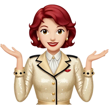 LaVerne Andrews from The Andrews Sisters with dark red hair, cream sequin outfit emoji