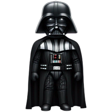 Full body Darth Vader with light saber drawn out to his right side and a very menacing look emoji