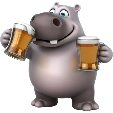 Hippo chugging beer acting very silly crazy drunk drinking beer silly face beer both hands lots of beer very goofy emoji