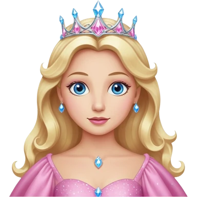 Glinda the Good Witch from the Wizard of Oz with light skin, blue eyes, blonde long hair, pink outfit emoji