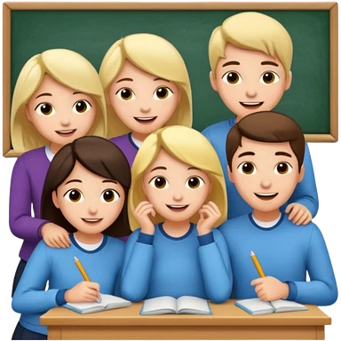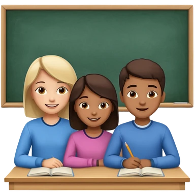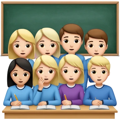 a group of students of both genders (boy and girl) talking quietly in a classroom emoji