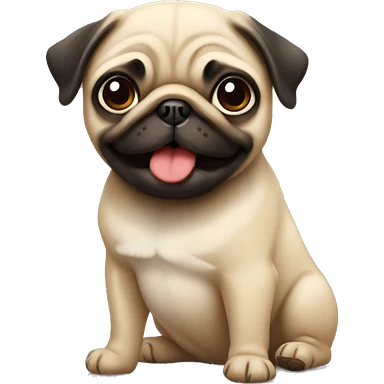 detailed-[cute pug]-realistic-full-body-sitting-emoji,-tail-resting-loosely-beside-its-paws,-head-tilted-dramatically, -sleek-fur,-simplified-yet-realistic-focused-features,-highly-detailed,-glowing-with-an-almost-sarcastic-glow emoji
