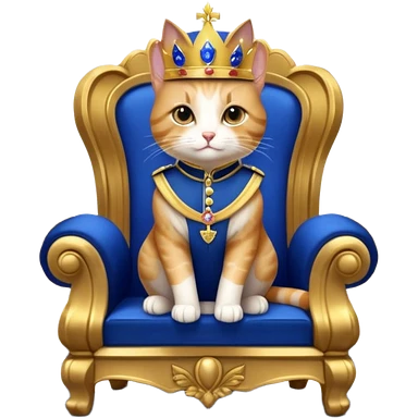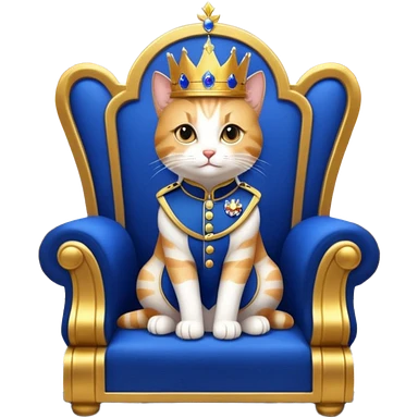 "A regal anthropomorphic cat, dressed in a royal blue and gold military uniform, sitting on a lavish marble throne in a grand, dimly lit palace hall. Cinematic lighting, highly detailed, dramatic, 10 seconds, ultra-realistic." emoji