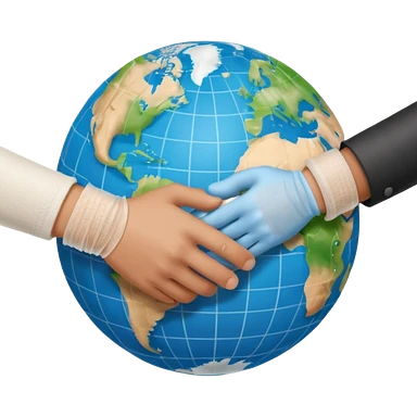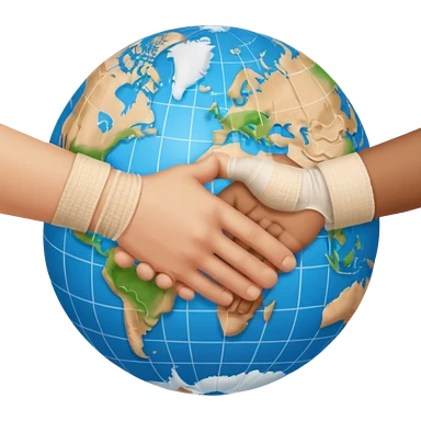 instead of two hands holding a globe, we have two hands handshaking in front of a globe. And in the background, we can see that the globe has a bandage or something. The handshake shows negotiation and the bandage around the globe shows improvement on climate change. Negotiation and climate change. emoji