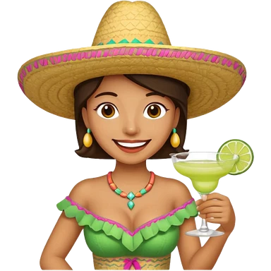 Pretty, sexy, slightly curvy white woman with short dark brown hair, dressed for Cinco de Mayo emoji
