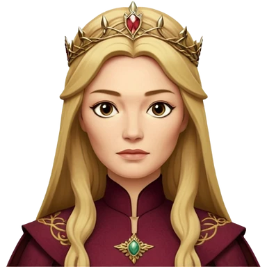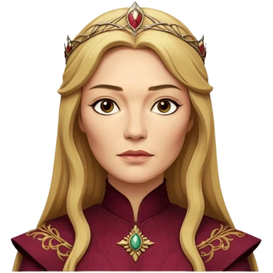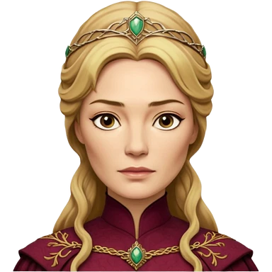Cinematic Realistic Cersei Lannister Portrait, depicted with lifelike skin texture, subtle rosy undertones, and soft natural lighting that enhances the gentle contours of her face. Her intricately detailed golden blonde hair is elegantly styled , emoji
