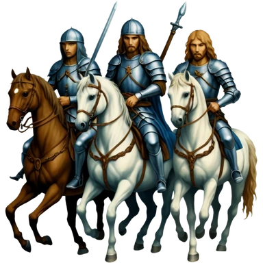 cinematic ultra HD, mysterios style, oil paint - The Four Horsemen of the Apocalypse, based on a graphic by Albrecht Dürer emoji