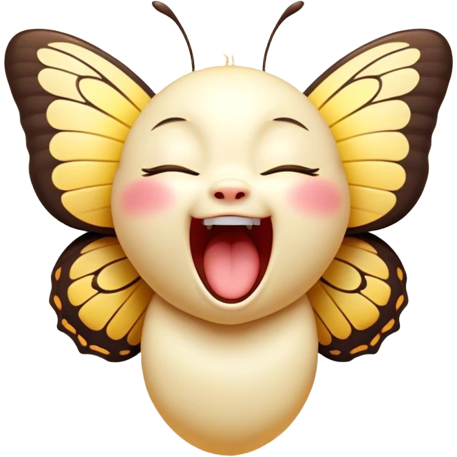 Cinematic Adorable Yawning Butterfly Portrait Emoji, Head tilted slightly with a dramatic, wide-open yawn, showcasing a delicate, softly fluttering body with gently drooping wings and sleepy, half-closed eyes, Simplified yet irresistibly cute features, highly detailed, glowing with a soft, cozy luminescence, high shine, relaxed yet expressive, stylized with a dash of whimsical floral charm, soft glowing outline, capturing the essence of a drowsy butterfly that appears ready to rest its wings for a nap!emoji